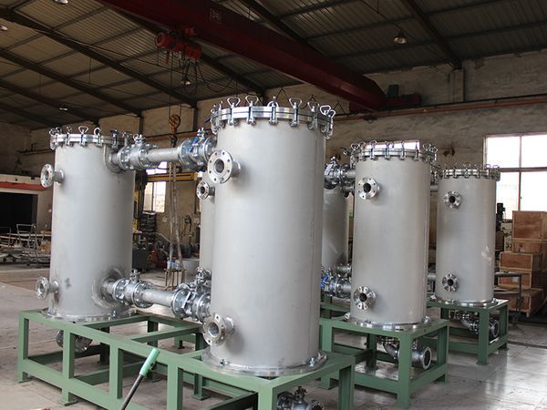 雙聯過濾器,適用于公稱壓力為0.6MPa的系統中。分別由二組過濾筒和二個三通換向閥組成,工作時一筒工作,一筒可進行清洗備用,可實現不停機切換過濾筒,達到不間斷工作的目的。