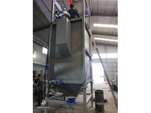 大袋拆包卸料機將噸袋包裝物料提升到進料口,人工將包裝袋下料口拆開后,打開流量控制閥和附帶的振動下料裝置,促使包裝袋內的粉粒狀物料通過自重落到下方料斗中,然后將干燥散料輸入正壓或負壓系統,或直接輸入喂料機。